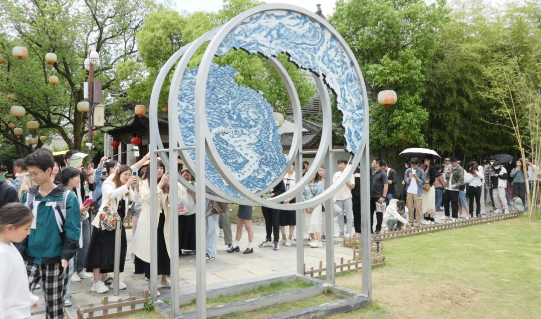 游客在景德镇陶阳里历史文化旅游区排队打卡(吴文 摄)