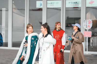 外国游客身穿汉服到“只有红楼梦·戏剧幻城”游玩。 本文图片均由受访者提供 |
