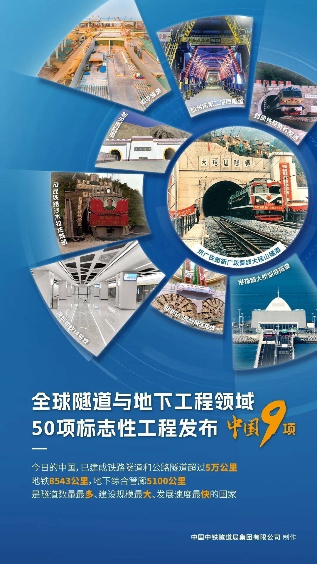 成昆铁路沙马拉达隧道、京广铁路衡广复线大瑶山隧道、西康铁路秦岭隧道、青藏铁路新关角隧道、港珠澳大桥沉管隧道、深圳地铁14号线、深中通道海底隧道、青岛胶州湾第二海底公路隧道……翻开“过去50年具有全球影响力的50个隧道工程”目录,入选的中国工程,见证了几十年来中国隧道技术的发展变迁。