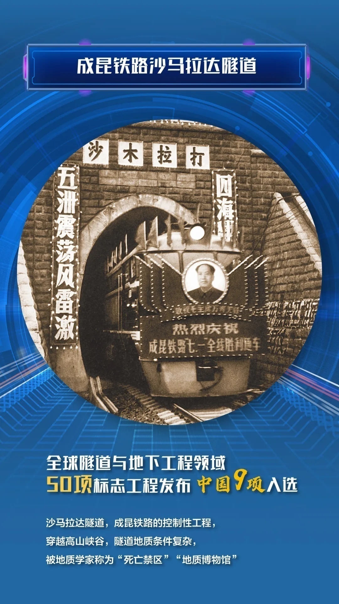 1959年3月,沙马拉达隧道开工,靠大锤、钢钎一点点凿孔爆破,往往一天只能前进半米。就是在这样艰苦的条件下,1966年11月沙马拉达隧道成功贯通,助力成昆铁路成功通车。