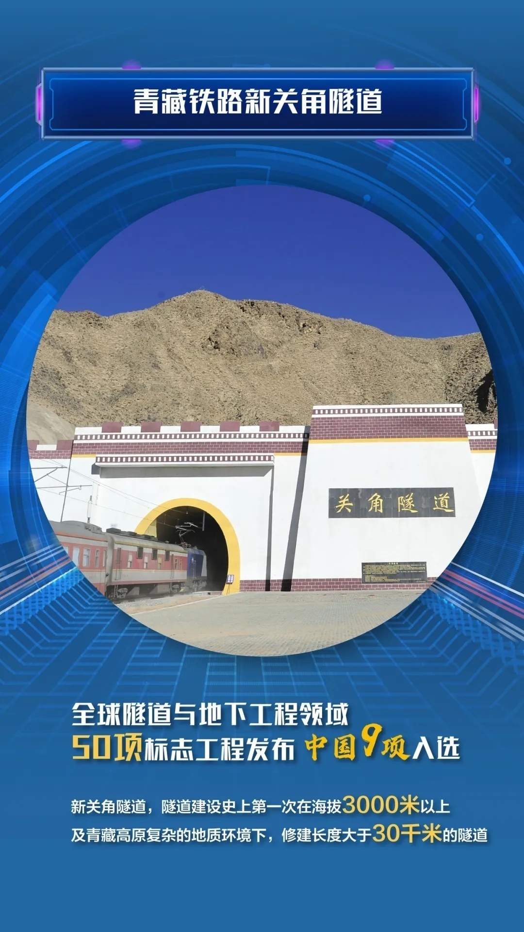 新关角隧道,青藏铁路西(宁)格(尔木)二线控制性工程,是隧道建设史上第一次在海拔3000米以上及青藏高原复杂的地质环境下,修建长度大于30公里的隧道。