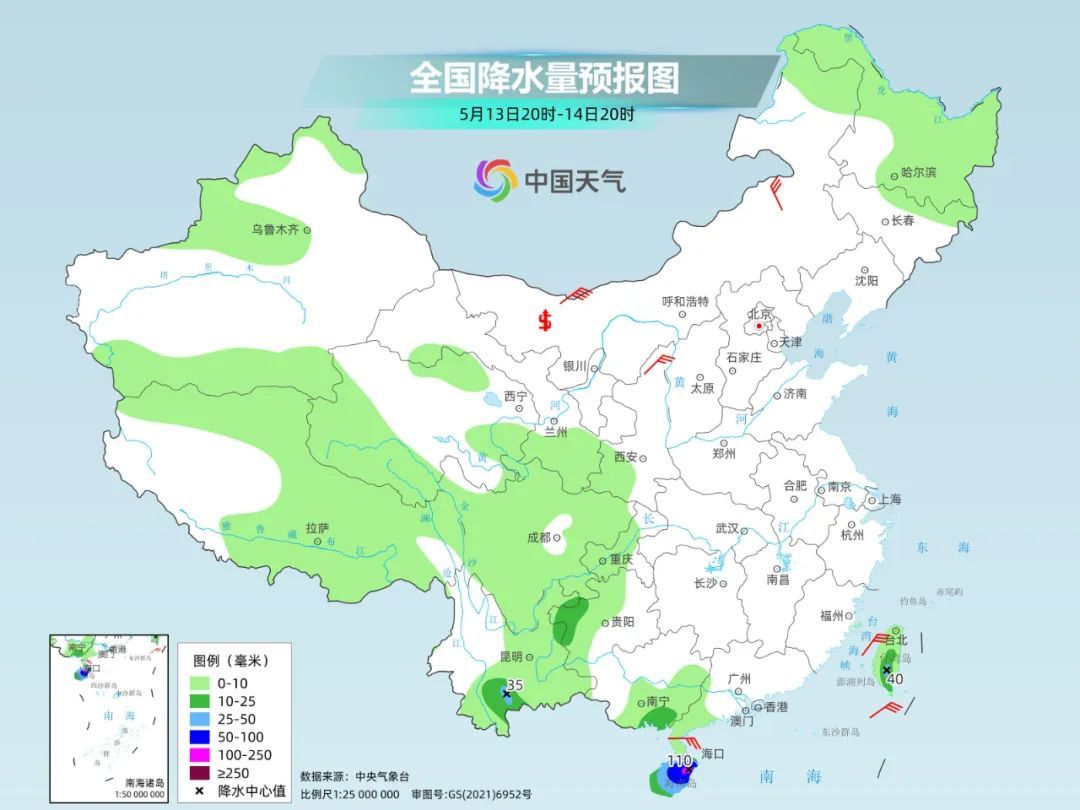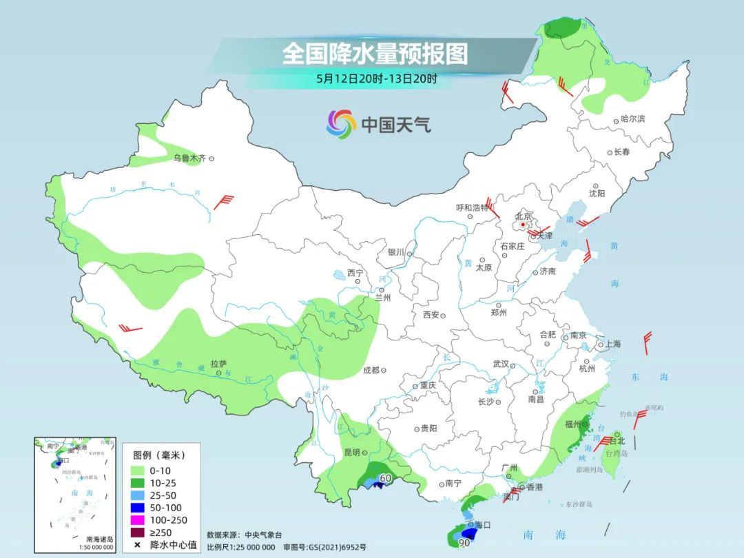 今天夜间到明天,降雨会继续向南压缩至华南南部等地,福建东南部、广东西南部沿海、海南岛等地部分地区有中到大雨,其中,云南东南部、海南岛中东部等地部分地区有暴雨。