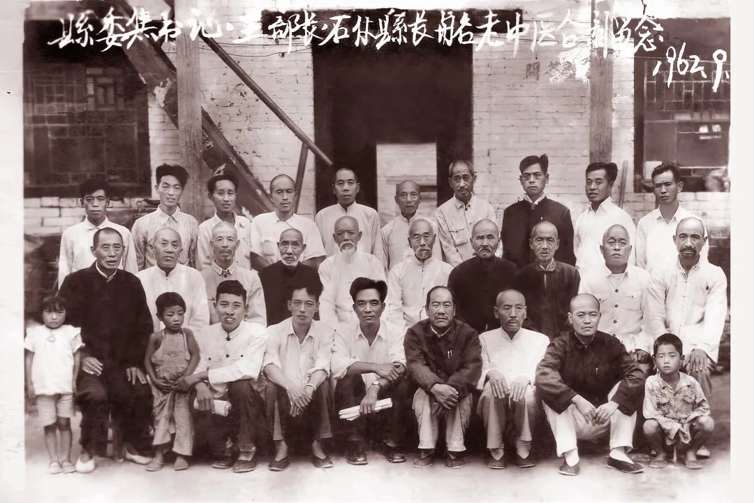 1962年,时任尉氏县委副书记的焦裕禄(前右五)同全县老中医合影留念。(保留照片)