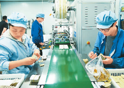 伴随着人们对中医养生的认可,工厂的发展越来越红火。工人大多是蔡老家村、刘皮村的村民,累计带动100多名村民就业。“我从小在农村长大,很清楚在村子周边务工的女性大多是宝妈,她们既要照顾孩子、老人,又要应对农忙时节的田间劳作。”朱云飞说,在厂子设立之初,就考虑到了村民们的实际情况,推行弹性工作制度,员工可以选择计件或计时工作模式。即使计件工作,工人每月也能赚三四千块钱!