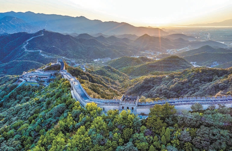 傍晚时分,夕阳的余晖笼罩大地。八达岭长城如巨龙蜿蜒,雄伟壮丽。本报记者 潘之望摄