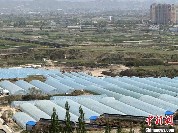 图为5月上旬,龚家屲村一个个蔬菜大棚拔地而起。戴文昌 摄