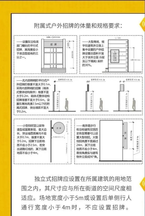 上海市从去年5月1日起实施了《上海市户外招牌设置技术规范》,对于店招的大小、设立方式均有明确的规定。