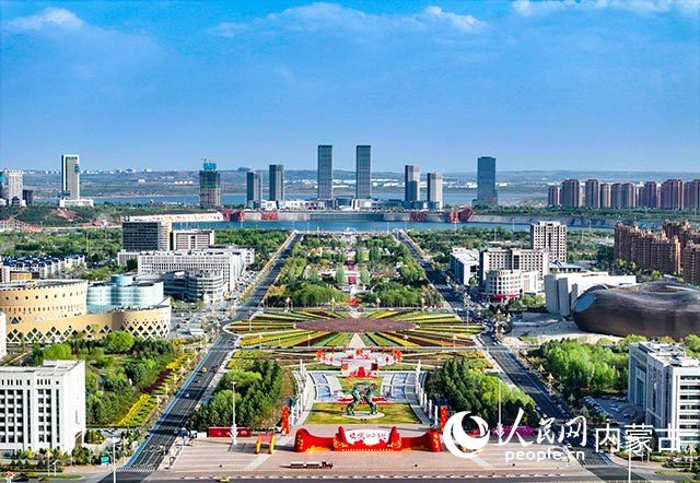 鄂尔多斯市康巴什区中轴线航拍图。康巴什区委宣传部供图