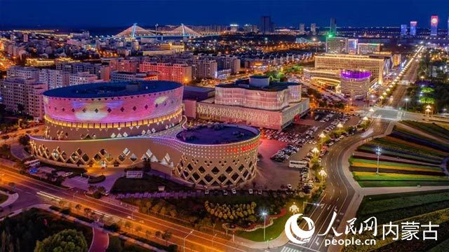 康巴什区文化建筑夜景。康巴什区委宣传部供图