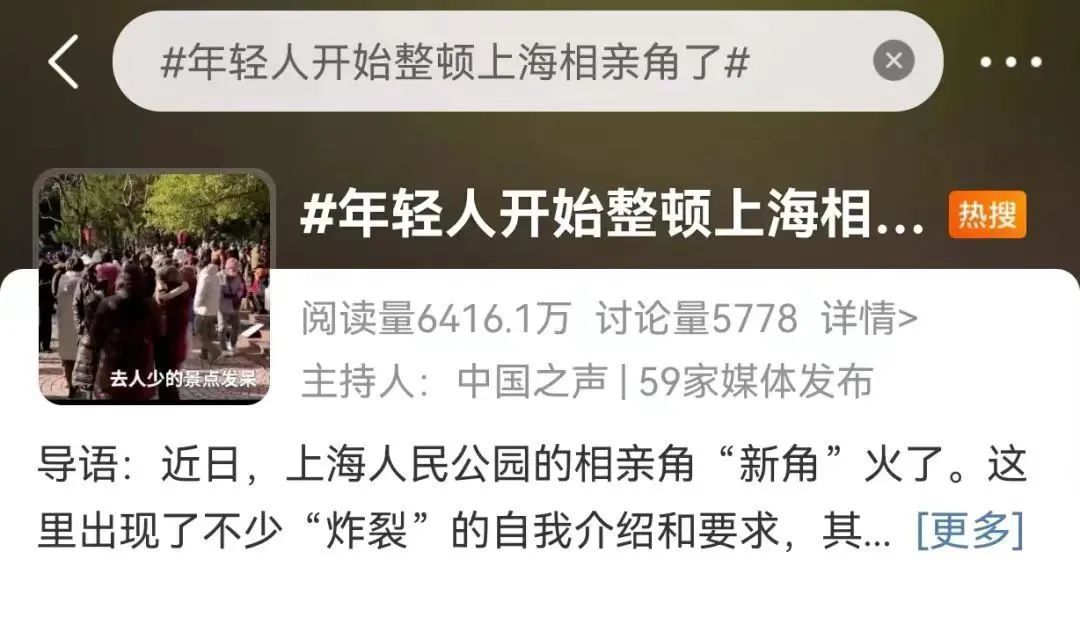 年轻人开始整顿上海相亲角话题登上热搜。图片来源:网络截图