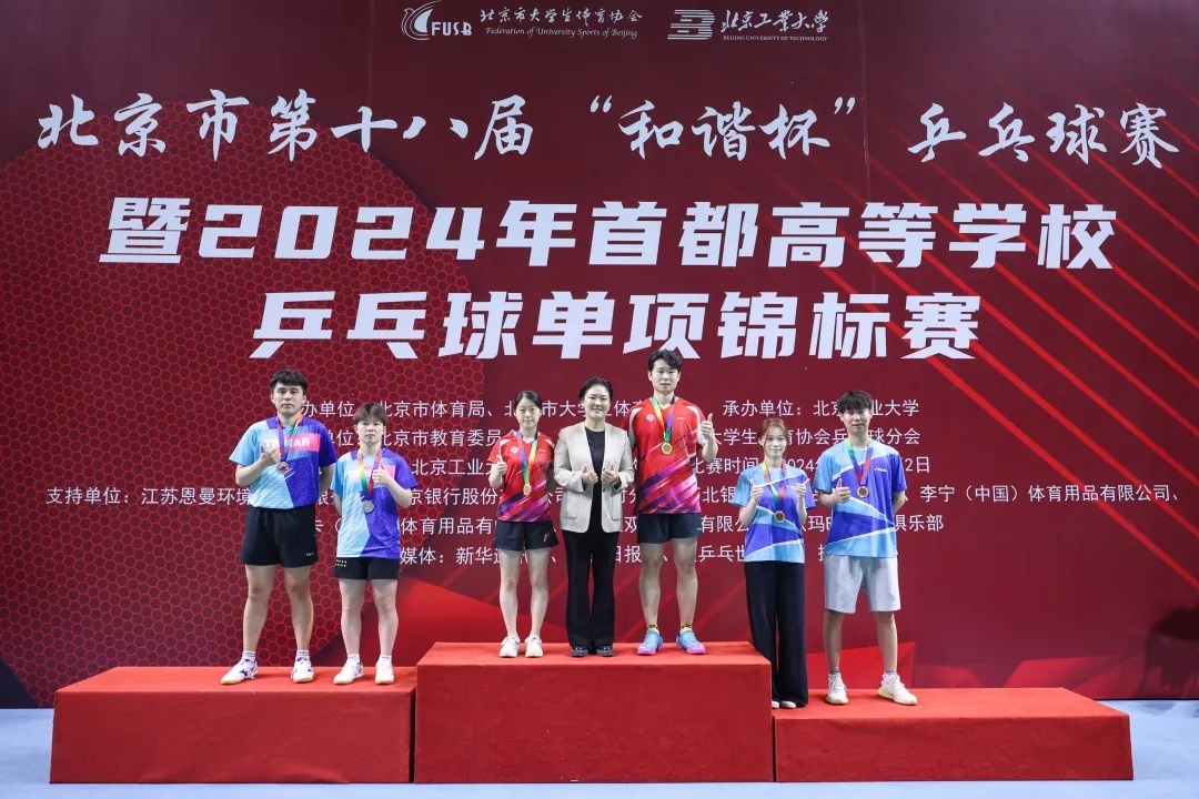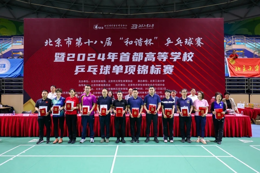 6月1日,由北京市体育局、北京市大学生体育协会主办,北京工业大学承办的北京市第十八届“和谐杯”乒乓球赛暨2024年首都高等学校乒乓球单项锦标赛、校长杯乒乓球比赛在北京工业大学奥林匹克体育馆开幕。乒坛名宿张燮林以及刘伟、刘国正、冯天薇和朱雨玲等乒乓球世界冠军为赛事开球。