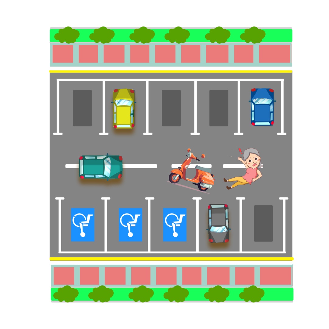 周女士骑电动车在机动车停车位间穿行,其行为本身存在过错;且车速过快,拐弯时未减速,电动车失去平衡致损害后果发生。所以,周女士骑电动车摔倒系其自身未尽到谨慎注意义务所致,与停车场无关。
