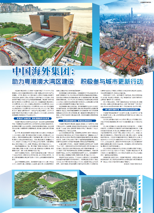 中国海外集团充分发挥专业化和业务一体化优势,坚持深耕港澳市场,与港澳经济社会相伴成长,在实现自身业务做优做强的同时,坚持高标准履行企业社会责任,积极服务港澳经济建设、社会发展和民生改善,为港澳保持长期繁荣稳定、更好融入国家发展大局贡献力量。