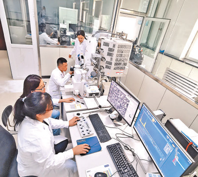 天津淡化所技术人员在研究反渗透膜技术。