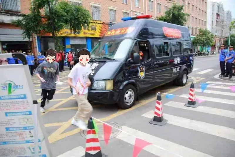 安抚两位考生的民警