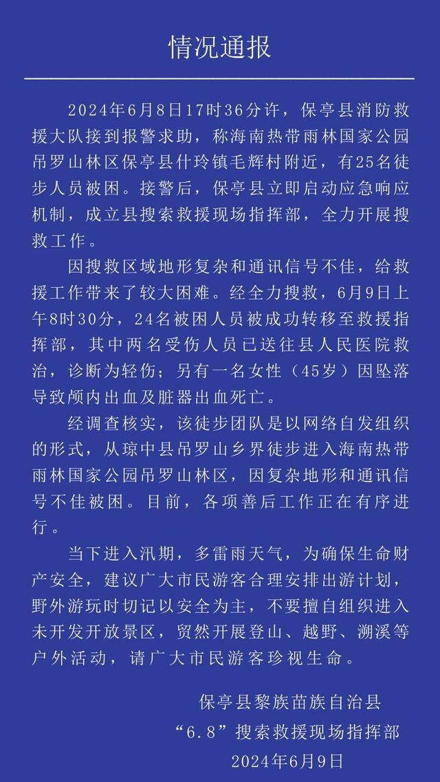 海南保亭通报“25人徒步被困”:1人遇难