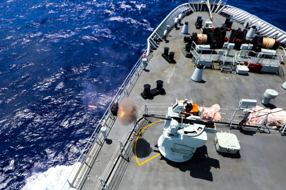 “开火!”锁定目标后,指挥员下达打击命令。刹那间,舰炮怒吼、火光四射。