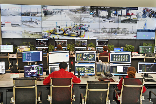 ∆在新疆油田公司采气一厂基层作业区生产指挥中控室里,监控人员正监控各油井、场站、锅炉等设备的实时运行情况。目前,新疆油田智能化设施设备已经在基层作业区、场站、联合站广泛应用。资料图,闵勇 摄