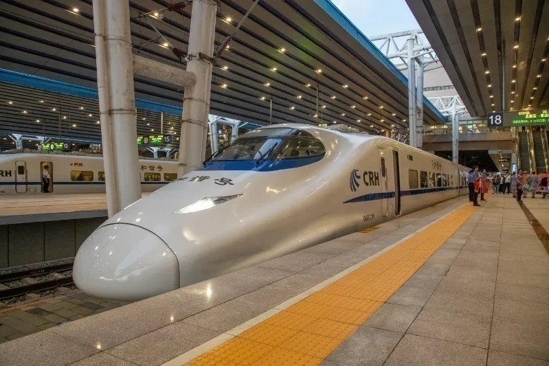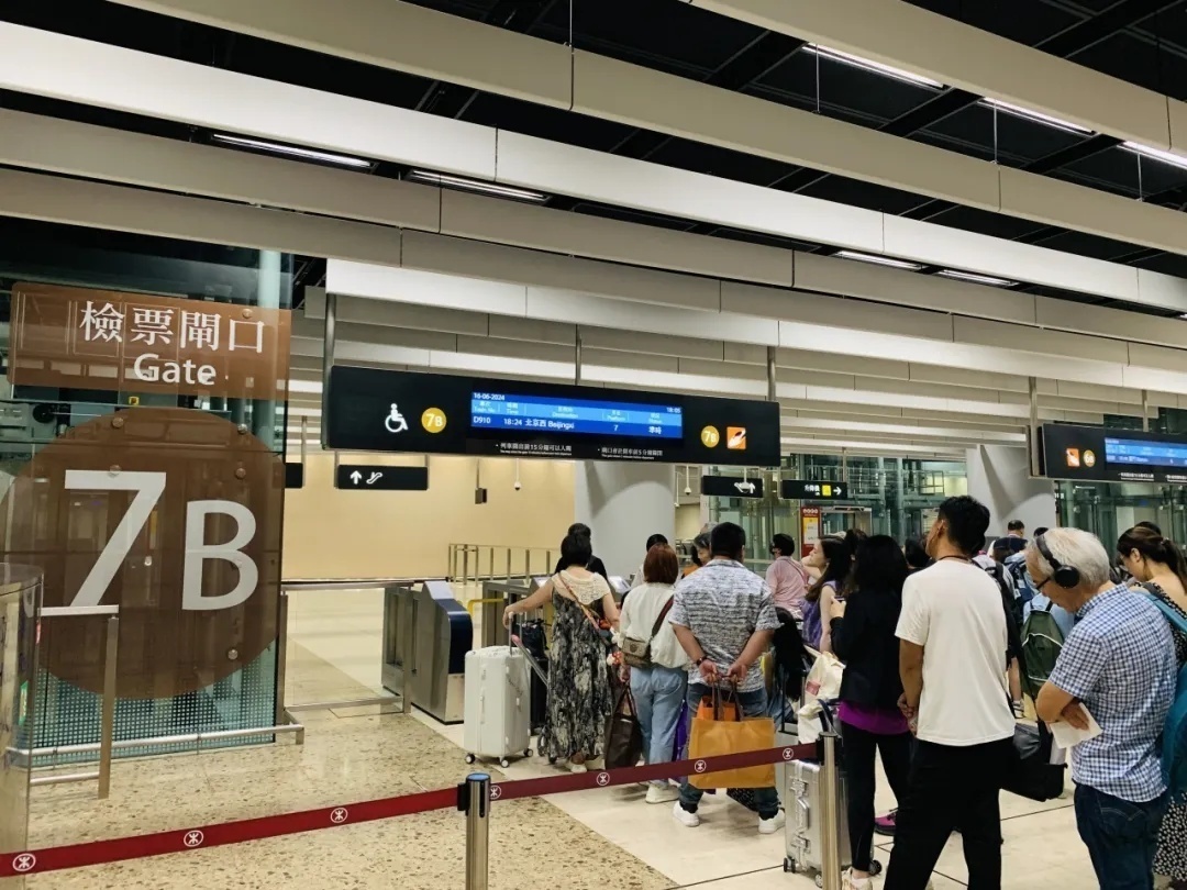通关后,乘坐首发动卧列车的旅客在车站拍照留念。