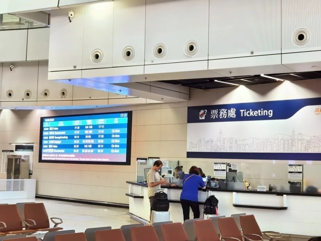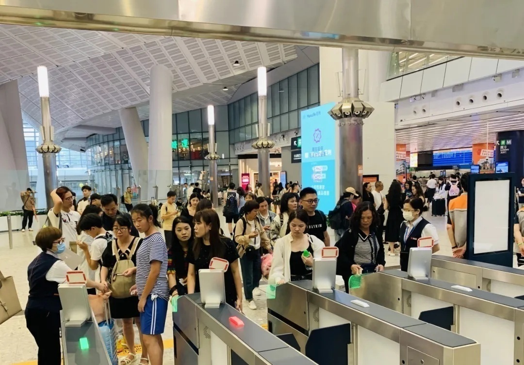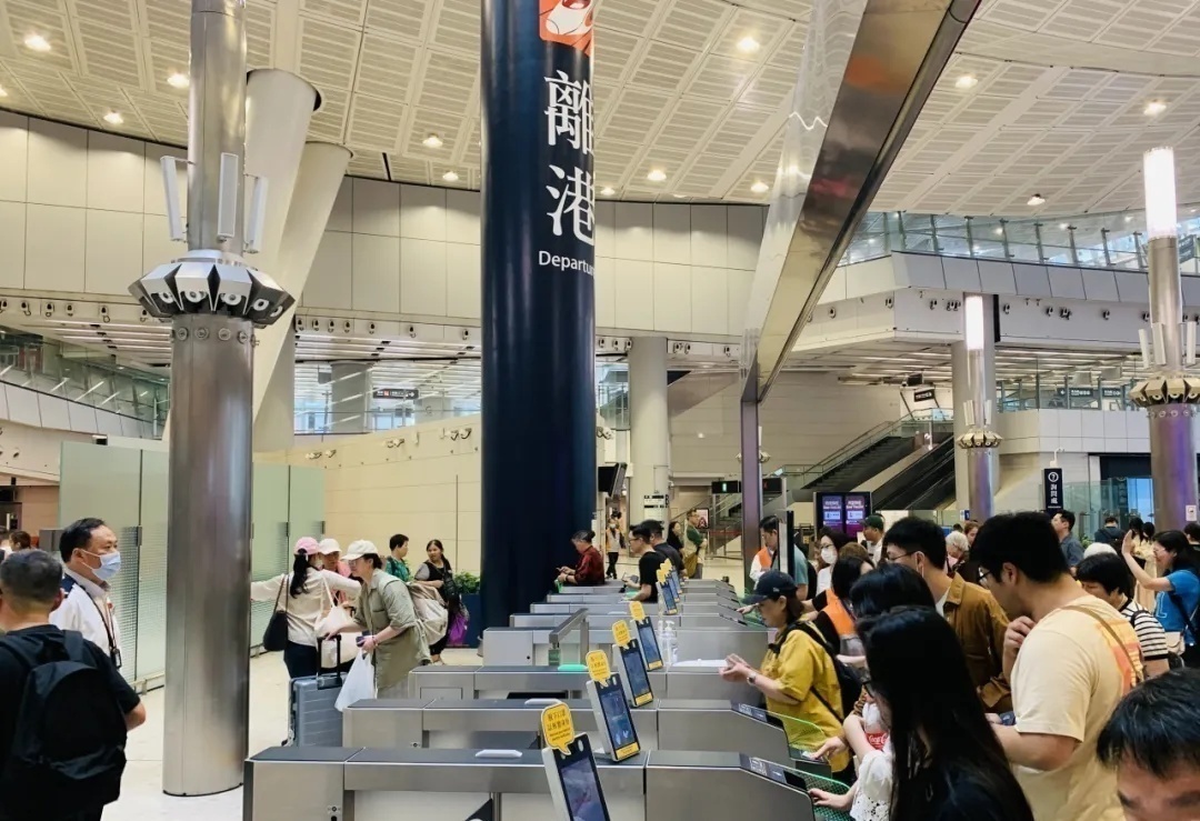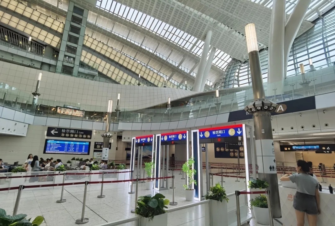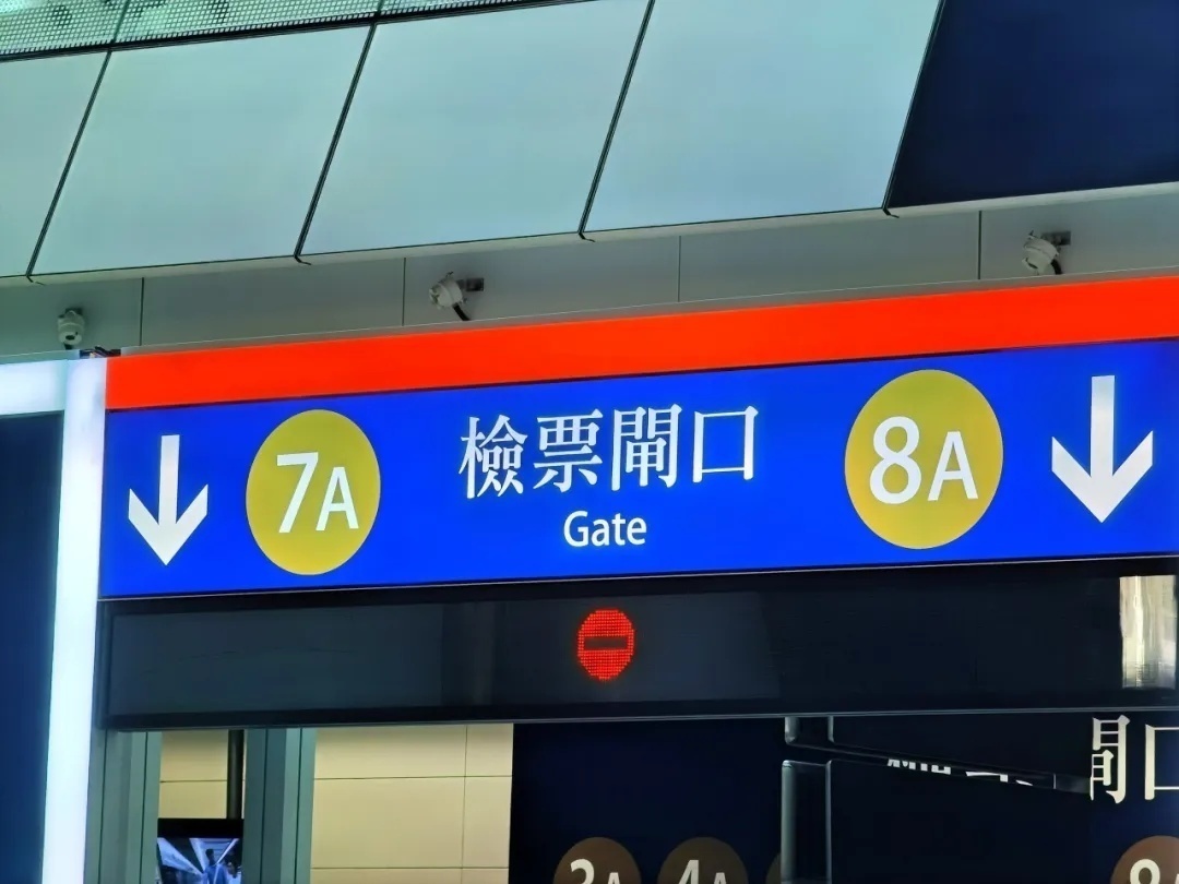 检票口上方的颜色条。红色为“待检票”,绿色为“正在检票”。