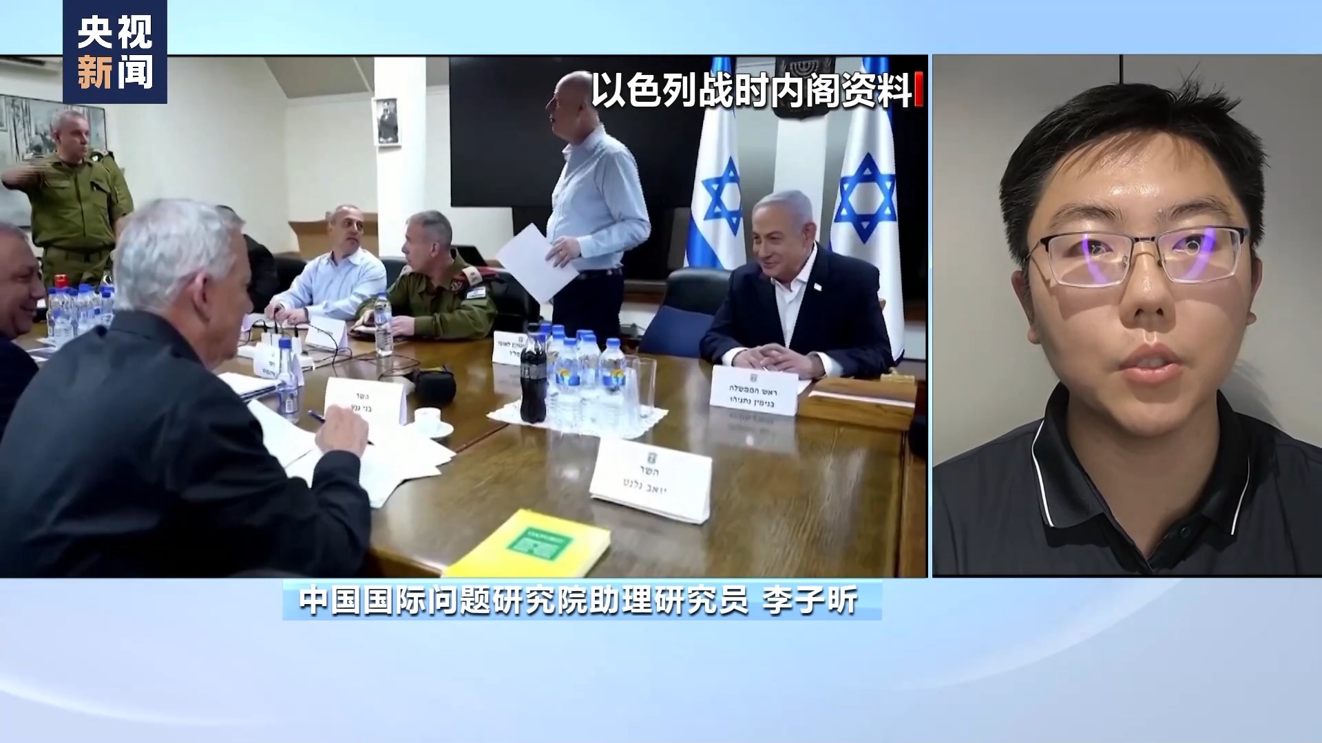 中国国际问题研究院助理研究员 李子昕:以色列战时内阁是在去年10月7日本轮巴以冲突骤然升级之后,由以色列总理内塔尼亚胡提议组建的。自组建之日起,迄今已经有8个多月的时间。此前战时内阁有三名正式成员,分别是以色列总理内塔尼亚胡、国防部长加兰特以及以色列主要反对党国家团结党领导人甘茨。此外还有三位观察员,包括国防军前参谋长埃森科特,以色列战略事务部长罗恩·德尔默以及右翼政党沙斯党领导人阿里耶·德里。有真正决策权的核心成员实际上是总理内塔尼亚胡、防长加兰特以及反对党领导人甘茨三人。