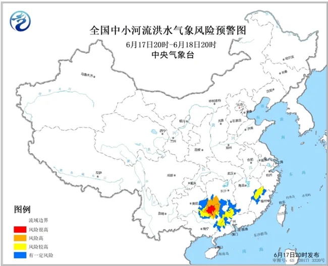 6月17日18时,水利部和中国气象局继续联合发布红色山洪灾害气象预警,中央气象台继续发布中小河流洪水气象风险预警。预计,6月17日20时至18日20时,湖南西南部、广西北部局地发生山洪灾害可能性很大(红色预警),广西北部等地局地发生中小河流洪水的气象风险很高(红色预警)。