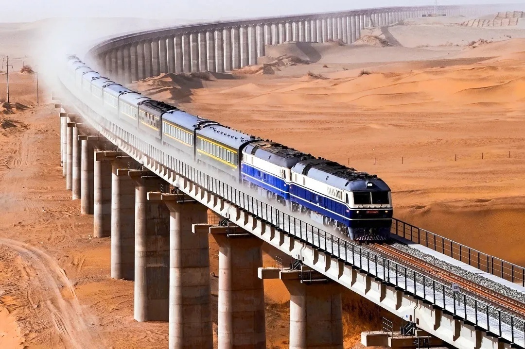 坐在火车上欣赏沿线大漠风光,更是一种别样的体验。当列车行驶在和若铁路上,旅客透过车窗便可观赏到壮阔的塔克拉玛干沙漠。随着列车的行进,金色沙海不断变换着形态,向旅客们展示着大自然的瑰丽与雄奇。