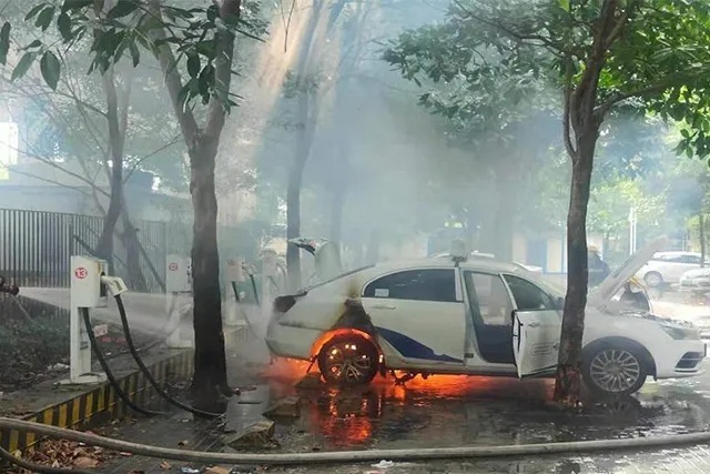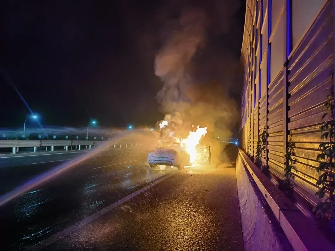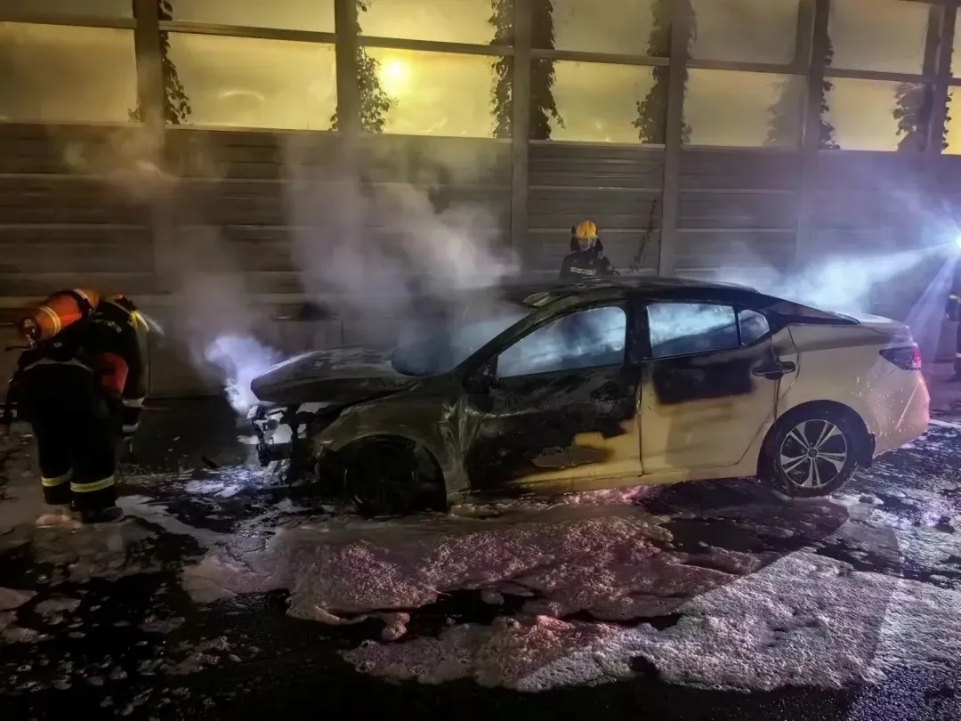 在实际救火作业中,新能源汽车电池易发生复燃现象,即便火势扑灭以后,依然建议车主不要返回车内,以免因小失大。