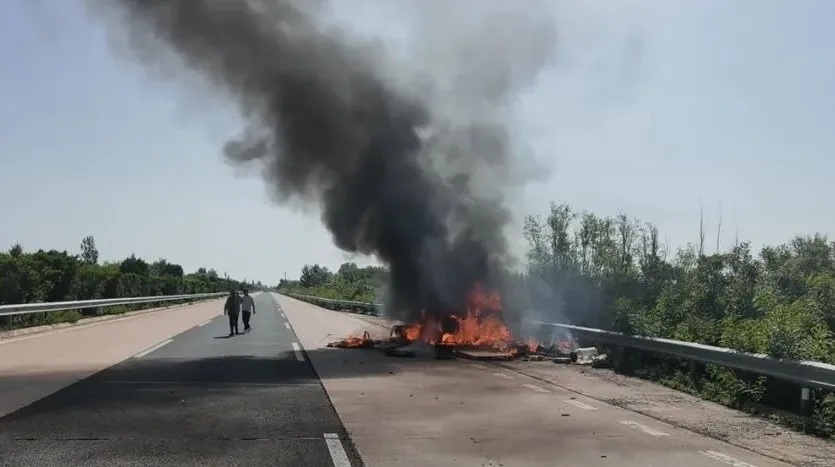 6月11日,山西高速交警二支队一大队接到报警称,孙右高速10公里有一辆货车发生自燃。接警后,民警赶到现场发现一辆货车正在燃烧,浓烟四起,便迅速做好现场警戒工作,并协助消防人员对火情进行扑救。据司机称,自己在开车过程中突然发现货仓起火。