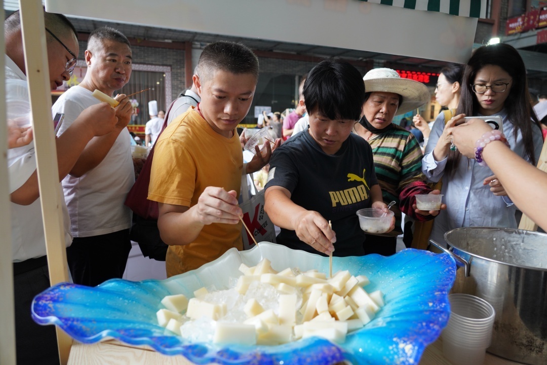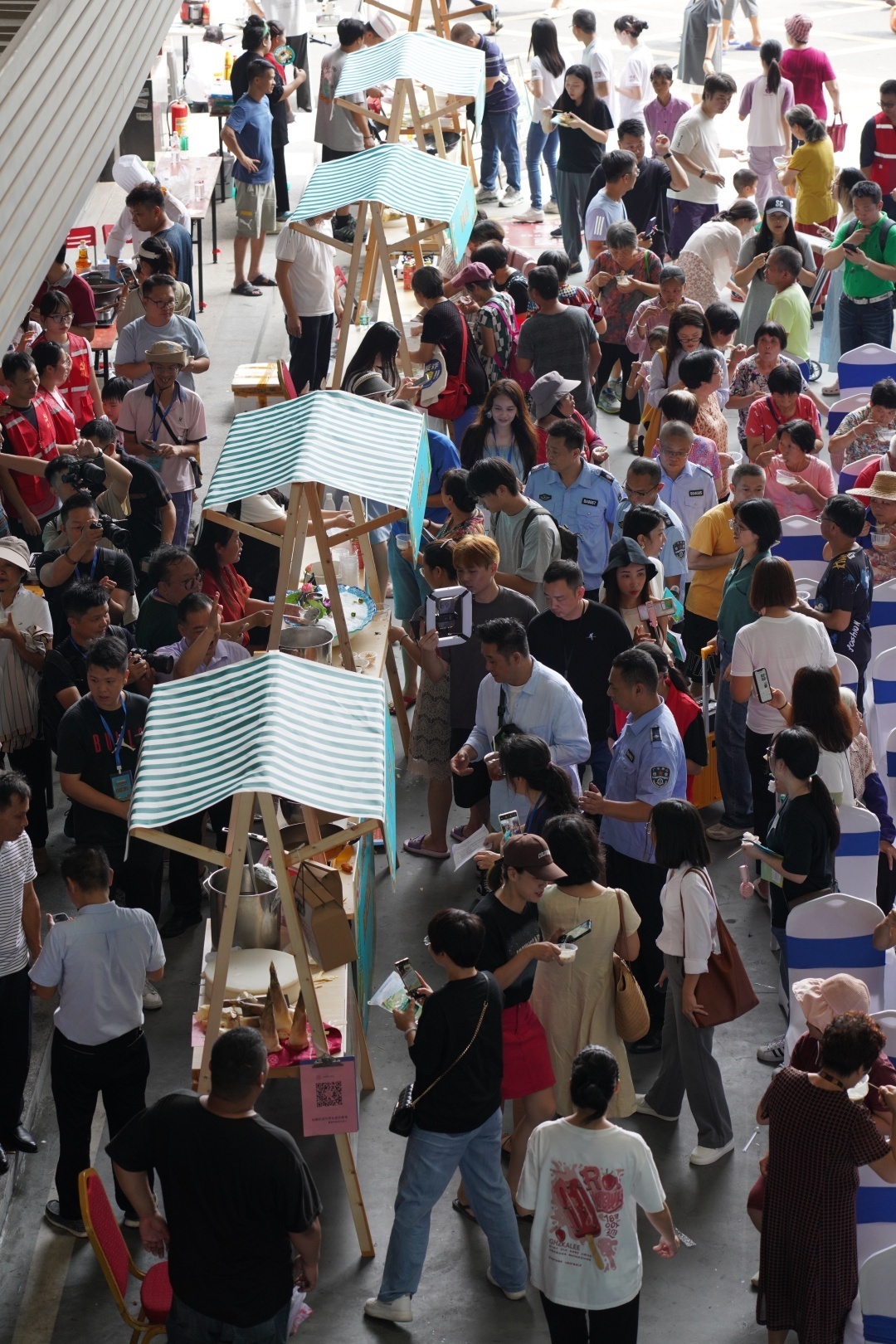 22日上午,广佛交界的桂城街道海宜达红木综合城人流如织、热闹非凡,百余市民游客在这里感受吊丝丹笋美食盛宴。