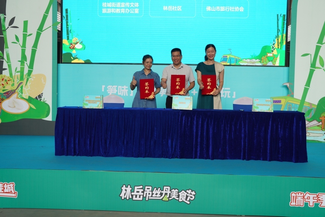 在现场还有一个细节值得关注。本次吊丝丹笋美食节吸引了近40家旅行社负责人的关注和参与。佛山市旅行社协会与桂城街道宣传文体办、林岳社区签订了三方合作协议,强化林岳吊丝丹在旅游市场上的影响力。“第一次吃林岳吊丝丹笋,很清甜爽口,很不错,各种做法很有特色,值得推荐。”佛山浩兴国旅总经理赵新英表示,“现在人们追求健康饮食,笋做出了本来的味道,我们想去广州推广,让大家都来尝试一下。”