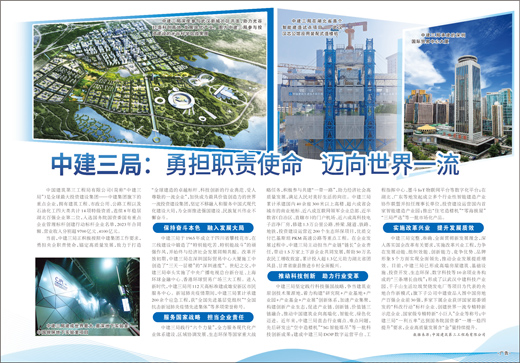 中建三局完整、准确、全面贯彻新发展理念,深入落实国企改革有关要求,实施改革兴业工程,力争在发展动能、组织效能、创新能力、竞争优势、品牌形象5个方面实现全面领先,推动企业发展提质增效。目前,中建三局已形成高端房屋建筑、基础设施、投资开发、生态环保、数字科技等10余项业务构成的“三条增长曲线”;形成了以武汉中建科技产业园、千子山生活垃圾焚烧发电厂等项目为代表的央地合作新模式;旗下子公司中建壹品入围中国房地产百强企业前30强,多家下属企业获评国家部委颁发的“科改行动”标杆企业、创建世界一流专精特新示范企业、国家级专精特新“小巨人”企业等称号;中建三局“一利五率”达到国务院国资委“一增一稳四提升”要求,企业高质量发展含“金”量持续提升。