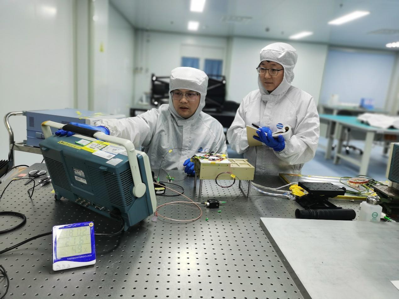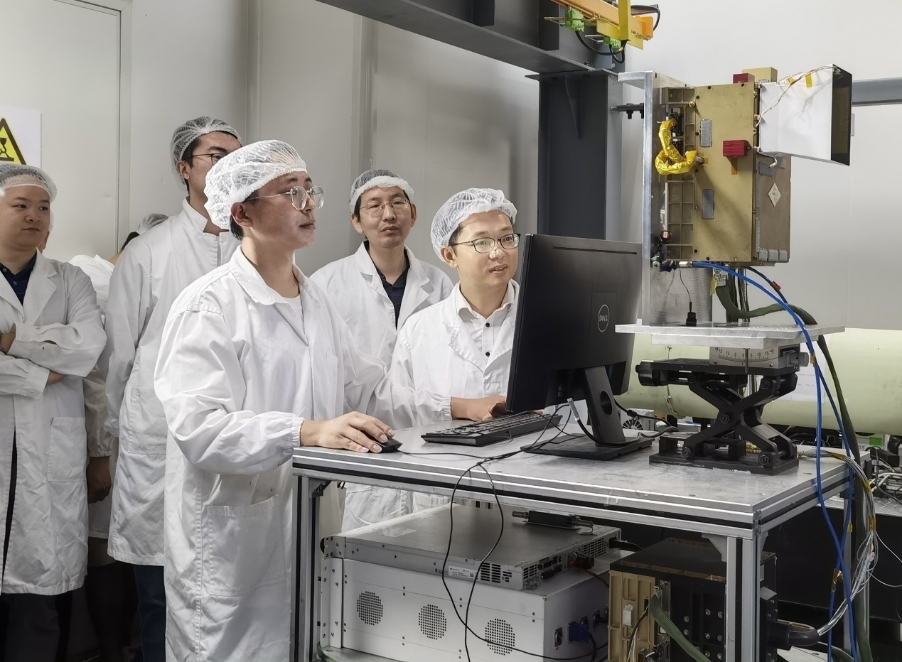 中国科学院上海技物所激光测量载荷研制团队在实验室进行室内标定测试。姚波摄