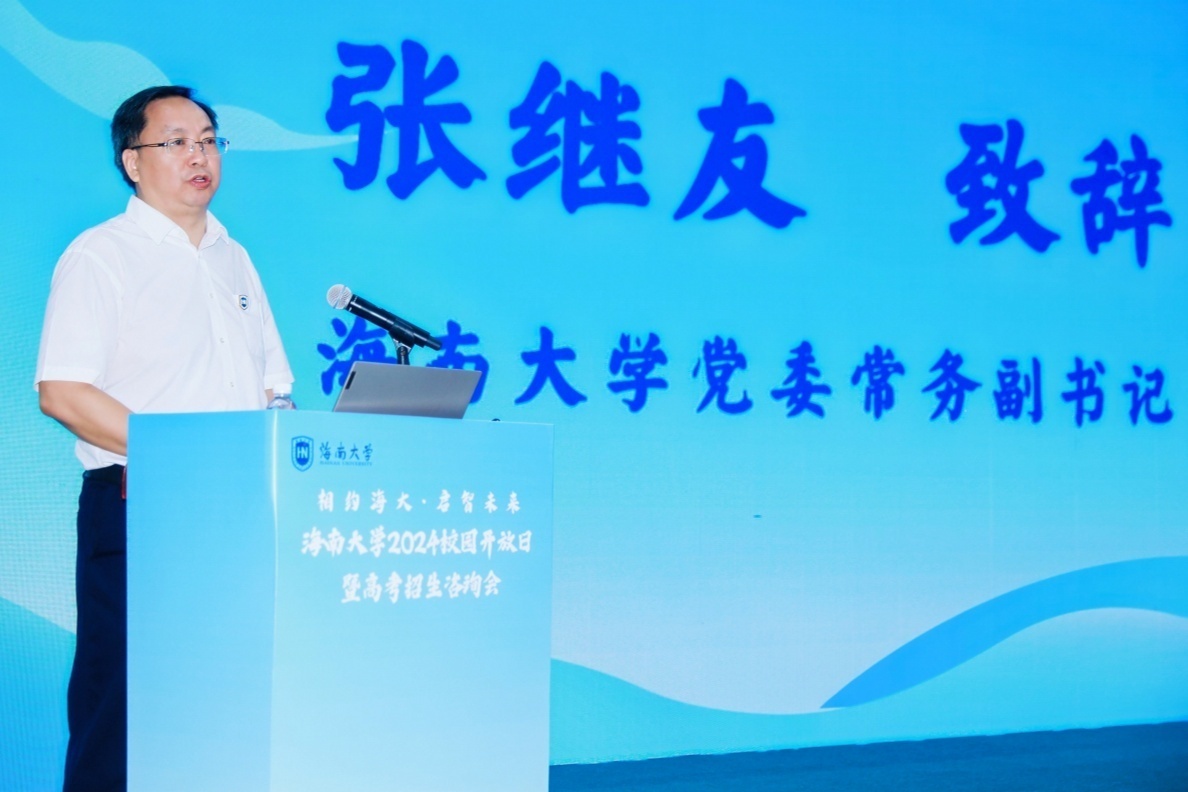 海南大学党委常务副书记张继友致欢迎辞,向全国各地的考生发出“邀约”。近年来,海南大学在人才培养、师资力量、学科建设、科研水平、创新育人成果等方面取得了高质量跨越式发展,向综合性研究型国际化“双一流”大学目标迈出坚实一步。根据最新发布的软科中国大学发展速度排名,海南大学2019—2022年总增速位列全国第一。