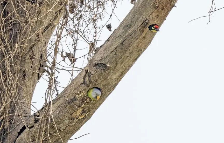 2024年4月,尹显伦在瑞丽江边观测、拍摄到了花头鹦鹉在树洞里进巢育雏的影像。