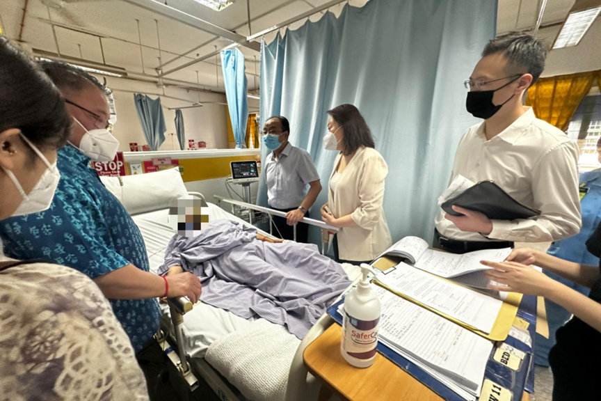 6月30日上午,中国驻马来西亚大使欧阳玉靖和马来西亚旅游、艺术和文化部部长张庆信共同前往吉隆坡中央医院,探望慰问在6月29日云顶旅游巴士翻覆事故中受伤的中国游客及家属。