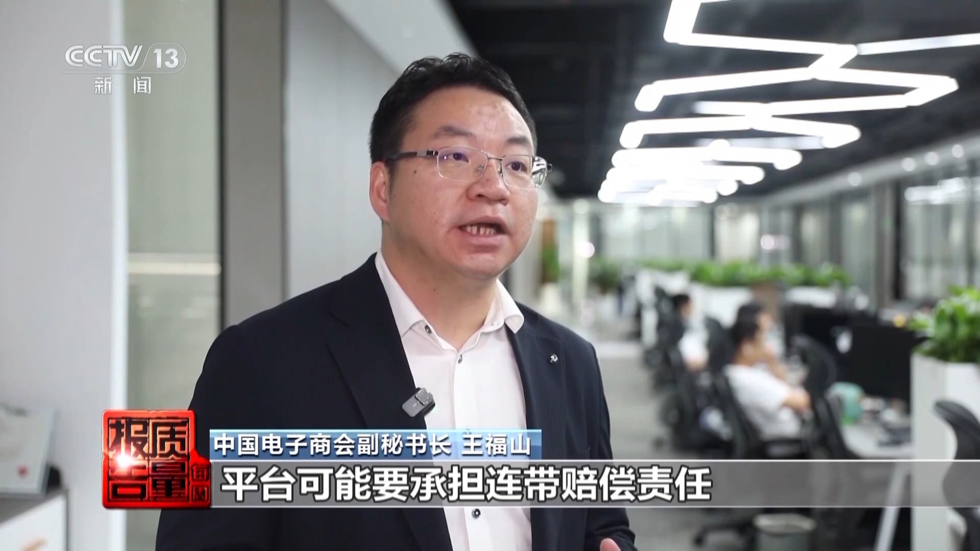 中国电子商会副秘书长 王福山:如果你收的保证金不足以支撑后边的赔偿,我认为平台可能要承担连带赔偿的责任,因为我是冲着这个平台上面的直播带货人,我去购买这个东西的,我怎么知道你保证金用到什么时候是完呢,作为一个普通消费者压根就不知道,可能5000的保证金卖了50万的货,如果这样子出现问题,我们认为平台负有不可推卸的责任。