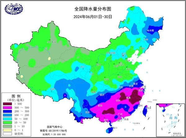 今年6月,南方地区经历了旷日持久的强降雨,中央气象台从6月10日开始连续21天发布暴雨预警,其中4天更是发布了最高级别的暴雨红色预警。统计数据显示,长江以南地区6月的累计降雨量普遍达到300至500毫米,其中广西、湖南、江西、浙江、福建、安徽等地部分地区降雨量500至800毫米,局地800毫米以上。