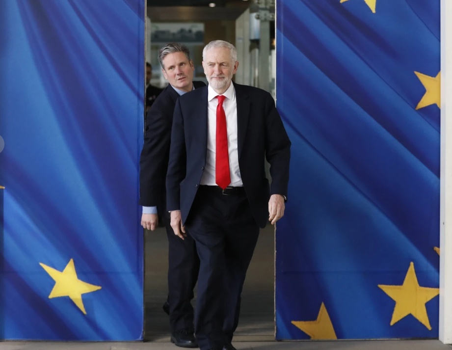 △2019年,英国工党领袖科尔宾(右前)和影子“脱欧”事务大臣斯塔默(左后)。