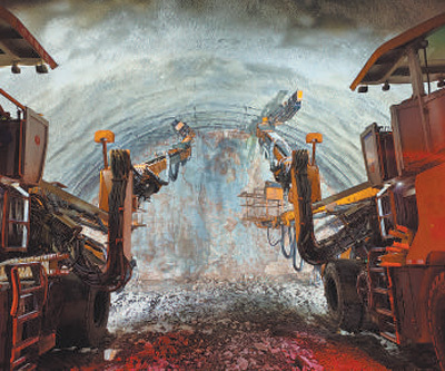 有了测量放样,司钻工杜帅登上三臂凿岩台车,熟练操作台车控制杆,5.5米的钻杆仿佛他的手臂般灵活。杜帅将钻杆瞄准轮廓线上一个点位,不需标识,只听一阵震耳欲聋的“哐哐哐”声后,一个45毫米直径的钻孔不偏不倚,恰好打在拱顶轮廓线放样点上。“这个过程非常考验司钻工技术。”何纪超说,一个熟练的司钻工,需要3年至5年时间才能培养出来。
