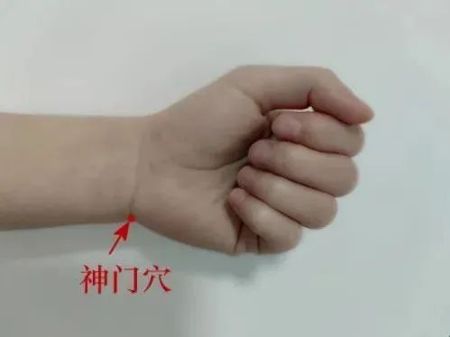 神门穴属手少阴心经。位于腕横纹尺侧端,尺侧腕屈肌腱的凹陷处。在腕关节的掌侧,小指末端延伸可摸到一突起圆骨,该圆骨下方凹陷处按压有酸胀感即为此穴。神门可泻火除烦,宁心安神,是治疗心受邪扰的重要穴位。