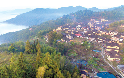 浙江绍兴市新昌县有众多传统村落。近年来,各村打造特色乡村旅游,已成为国家全域旅游示范区。图为新昌县回山镇樟花村航拍图。