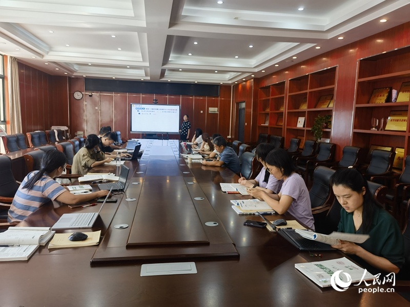 郑东外国语学校教育集团龙翔校区数学教研组集体教研。人民网记者 尚明桢摄