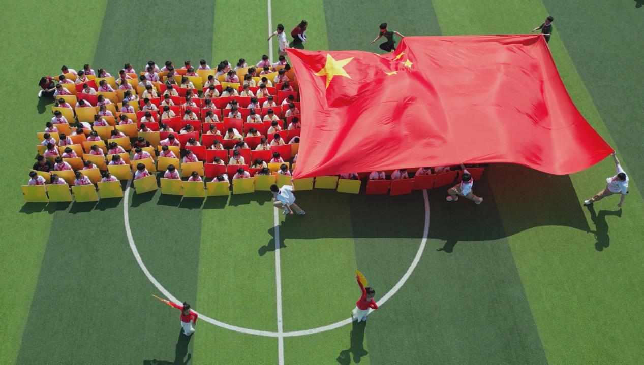 金水区纬五路第一小学教育集团东岳校区运动会开幕式表演《致敬我的祖国》。于明照摄