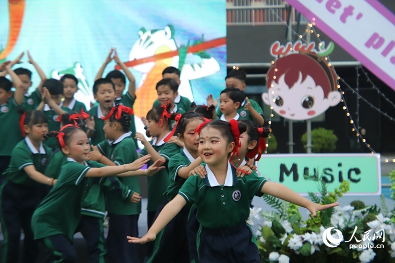 金水区纬五路第一小学教育集团东岳校区“六一草地音乐节”表演。人民网记者 尚明桢摄