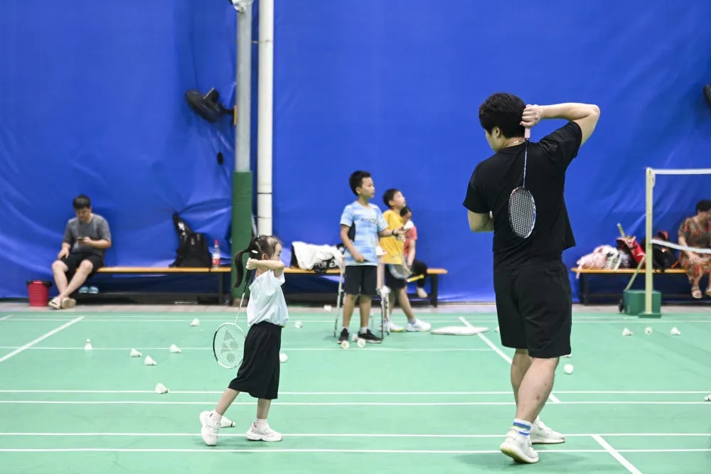 黄馨媛帮助在羽毛球馆做保洁的妈妈