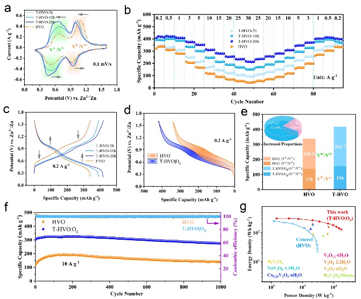 图3.MXene原位诱导钒氧化物作为水系锌离子电池电极材料的电化学性能对比