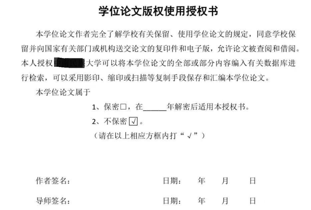 《学位论文版权使用授权书》截图