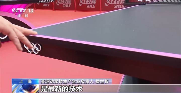 上海台记者 韩琼:球桌细节设计也很考究,巴黎2024字样和奥运五环标志其实都是立体设计。由于切割角度特别,在选手打球时不会剐蹭到球员和他们的服装。