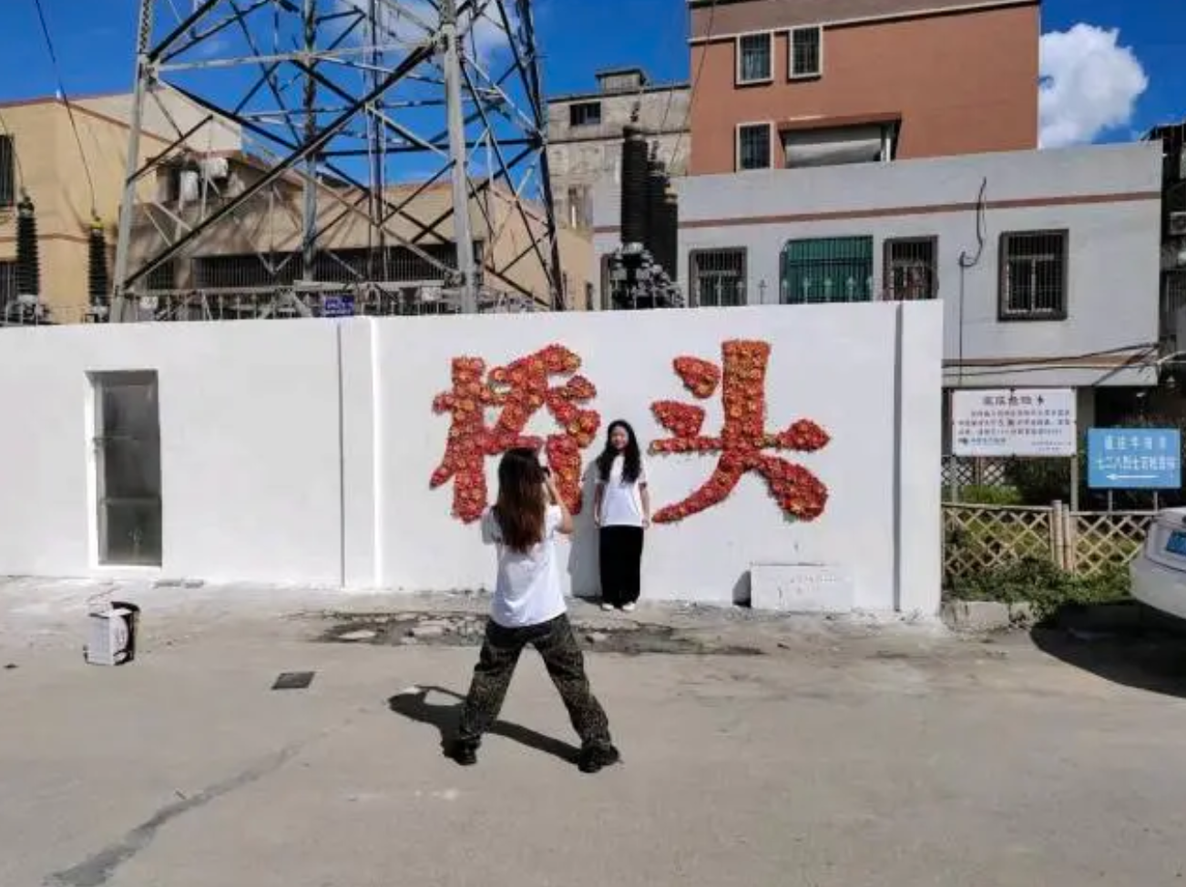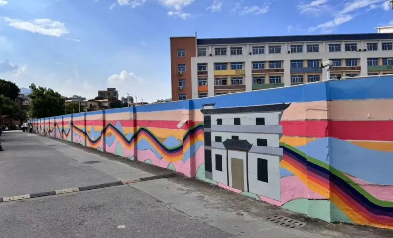 学生绘制的“莲塘百米墙绘彩虹墙”